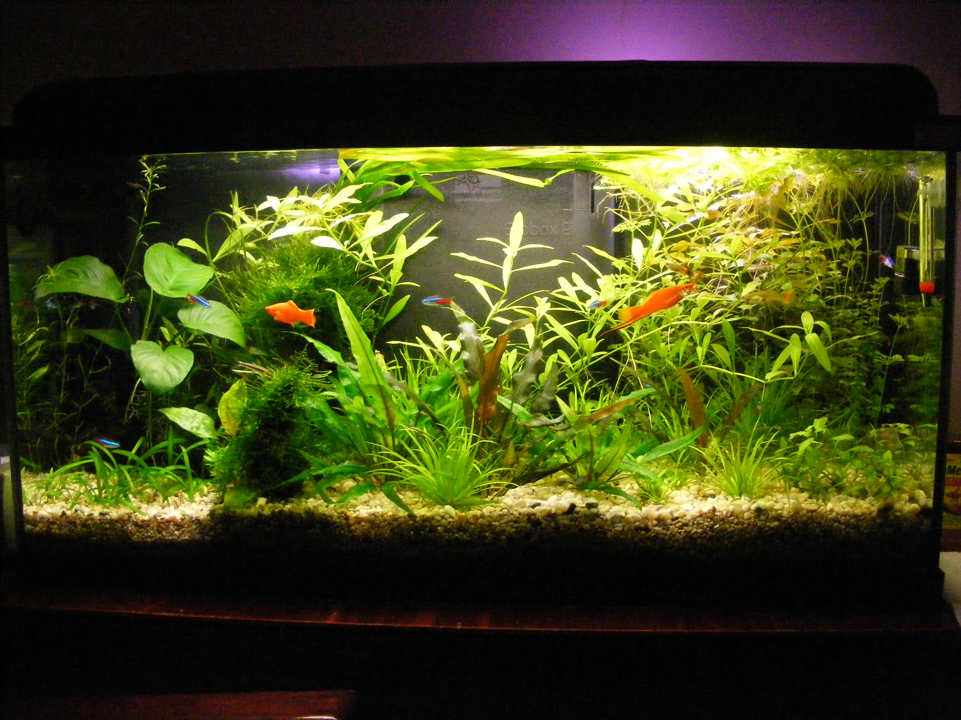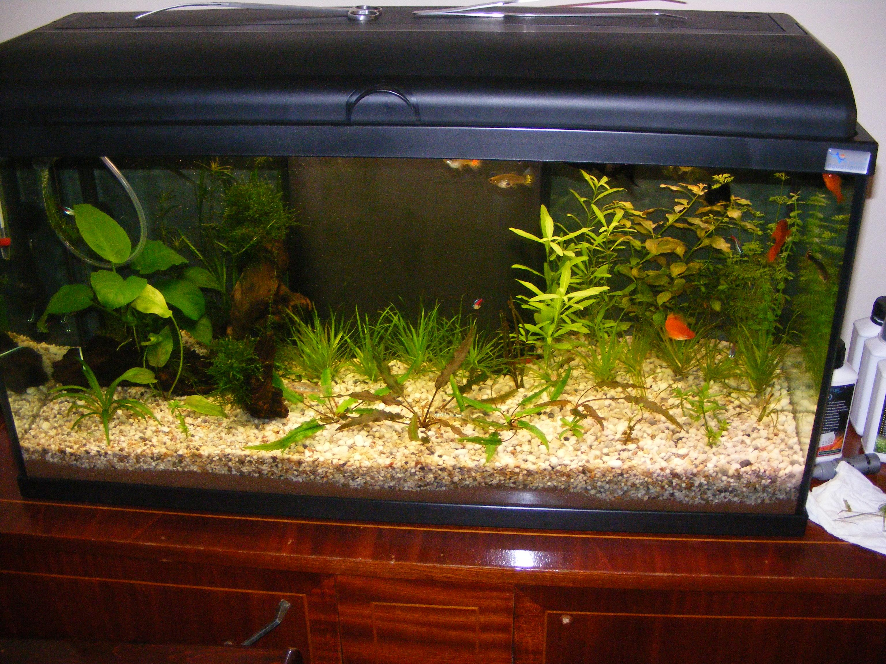 Din pacate pentru cativa cativa neoni si pentru un cory, nu am fost atent ieri la curatenie si s-a desfacut capul de la filtrul extern, pe unde trage mizeria. Dimineata cand a pornit lumina, mi s-a parut ca nu mai merge reactorul, apoi constat ca nu am debit la filtrul extern, iar cand am descacut cotul acela care intra in acvariu, era o masa de pesti morti.