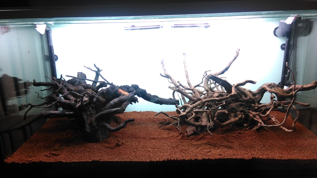 Deci: substratul de aquabasis are 4-5 cm. Cred ca o sa adaog si cei 5 l ramasi. As dori sa creez ceva forme de relief. Pastrez substratul nutritiv uniform si fac dealuri din manado sau invers?