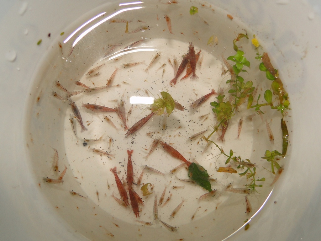 Cum crevetii s-au inmultit peste masura, i-am donat unor colegi de forum, cand cu punguta, cand cu borcanul de muraturi si uneori cu galetusa de plastic (foto).