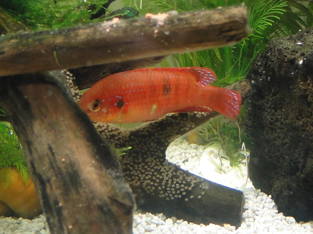 2. In carti sau pe net scrie ca depun o data la 3-4 saptamani. La ai mei am vazut ca pot depune iar si dupa 2 saptamani. Oricum, asta e mai putin important. Cel mai interesant e sa vezi tot procesul de la A la Z: de la depunere la ingrijirea lor, de la eclozarea icrelor la mutarea puilor dintr-un colt in altul al acvariului, iar intr-un final, sa ii vezi cum inoata pe langa parinti.