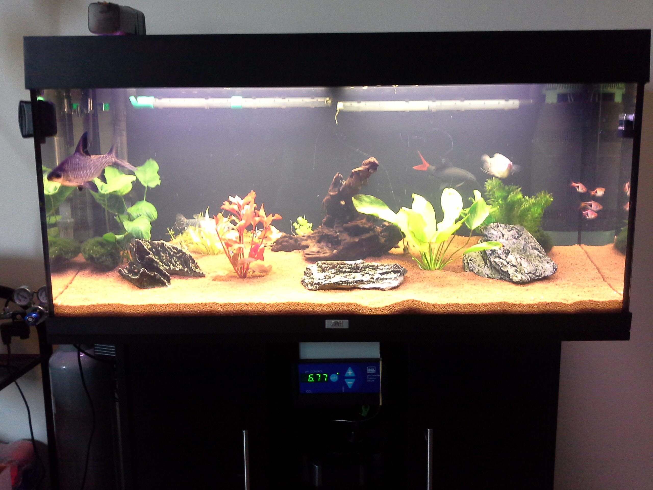 Gata,am terminat.Am golit acvariul,l-am spalat,am montat toate acareturile de la incalzitorul de substrat pana la butelia de CO2 si acum functioneaza. Momentan sunt putine plante,dar urmeaza sa iau(aici trebuie sa studiez ce) plus un card de neoni.