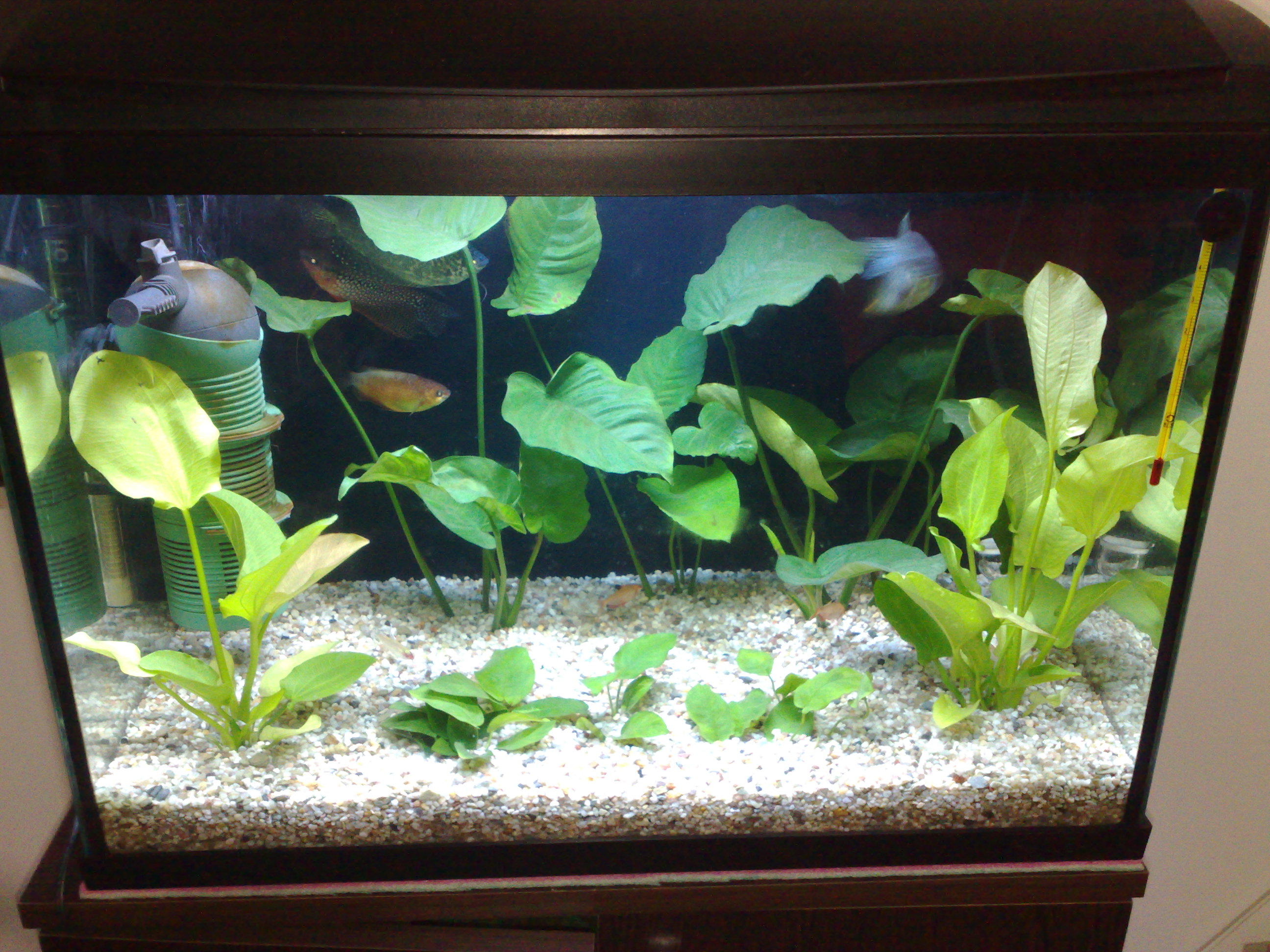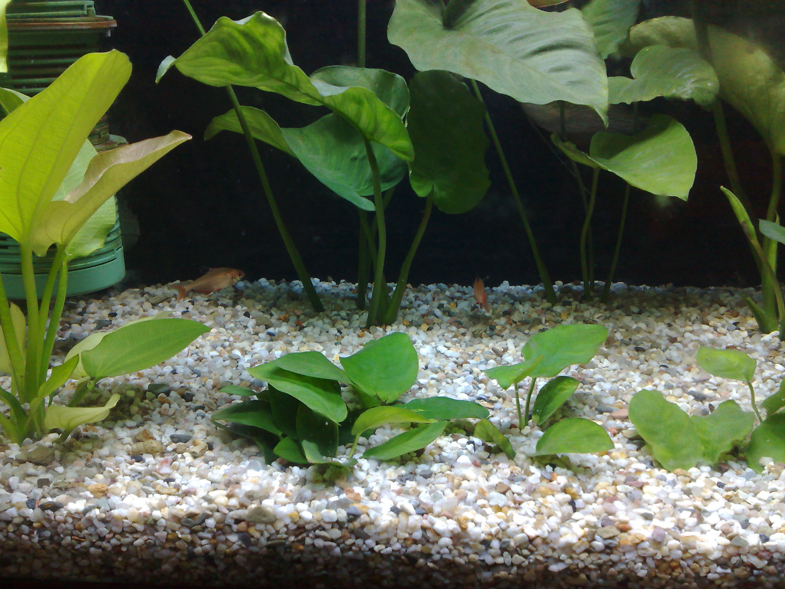 Salut.Ai grija la anubias.Vand ca le-ai plantat in substrat...anubiasul se leaga pe lemne de obicei.Daca il lasi in substrat oi sa ii putrezeasca radacinile.