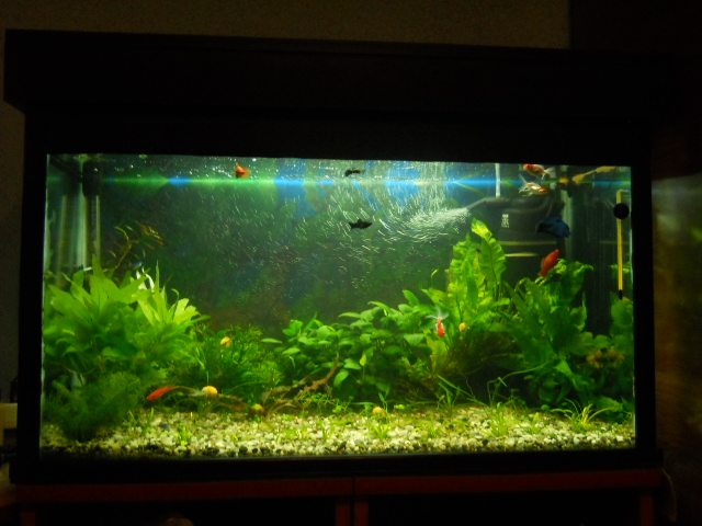 La capitolul pesti, nu stiu ce sa-ti zic, pastrezi ce-ti pace, insa caraii vor distruge plantele mai tarziu,poate mai gusta si cate un pestisor, fac multa mizerie si iti va fi greu la curatenie. Sanitarii sunt ok, gupi la fel, neonii trebuiesc mai multi, le place in grup