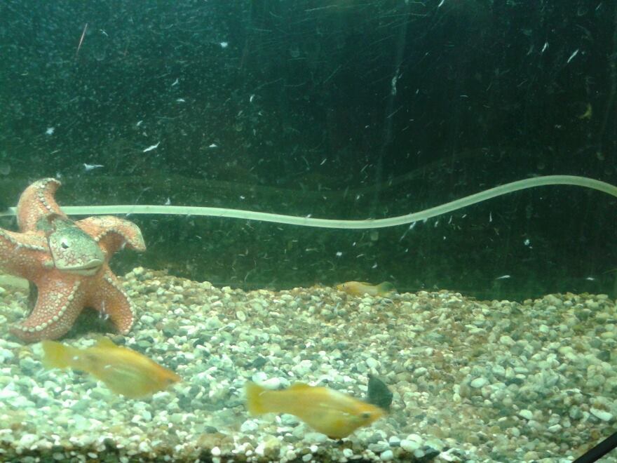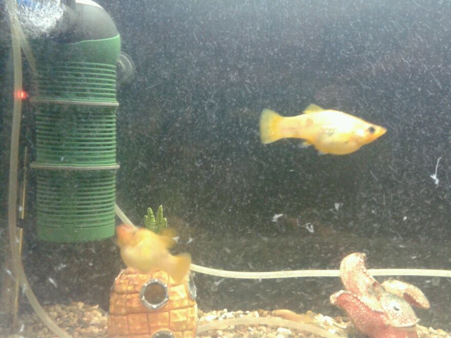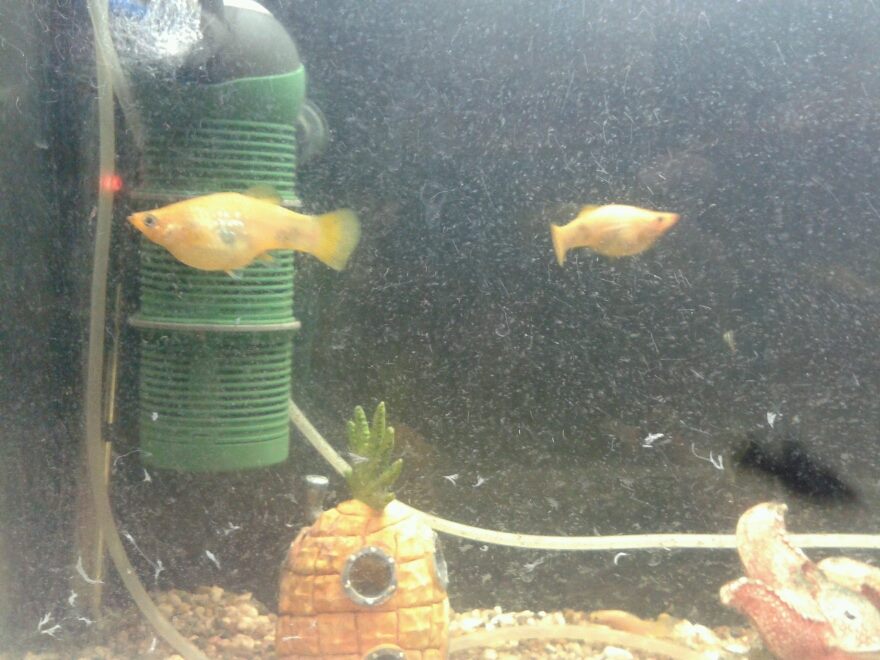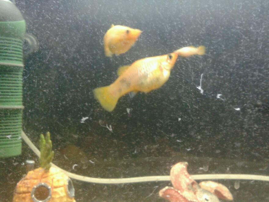 am 2 pesti gestanti (se pot vedea in pozele atasate), de multa vreme. Temperatura in acvariu este de 34 de grade. De ce nu dau nastere puilor?