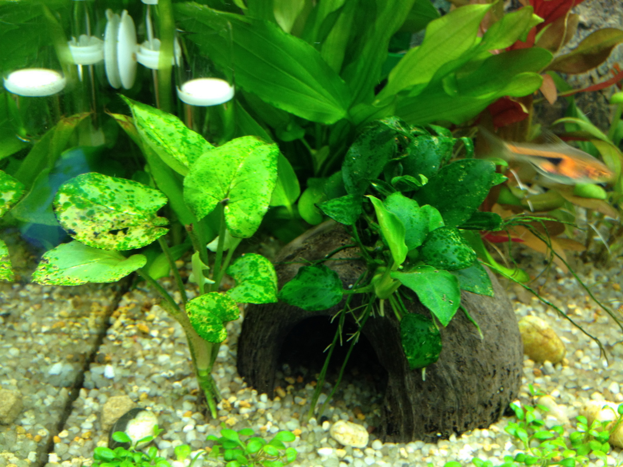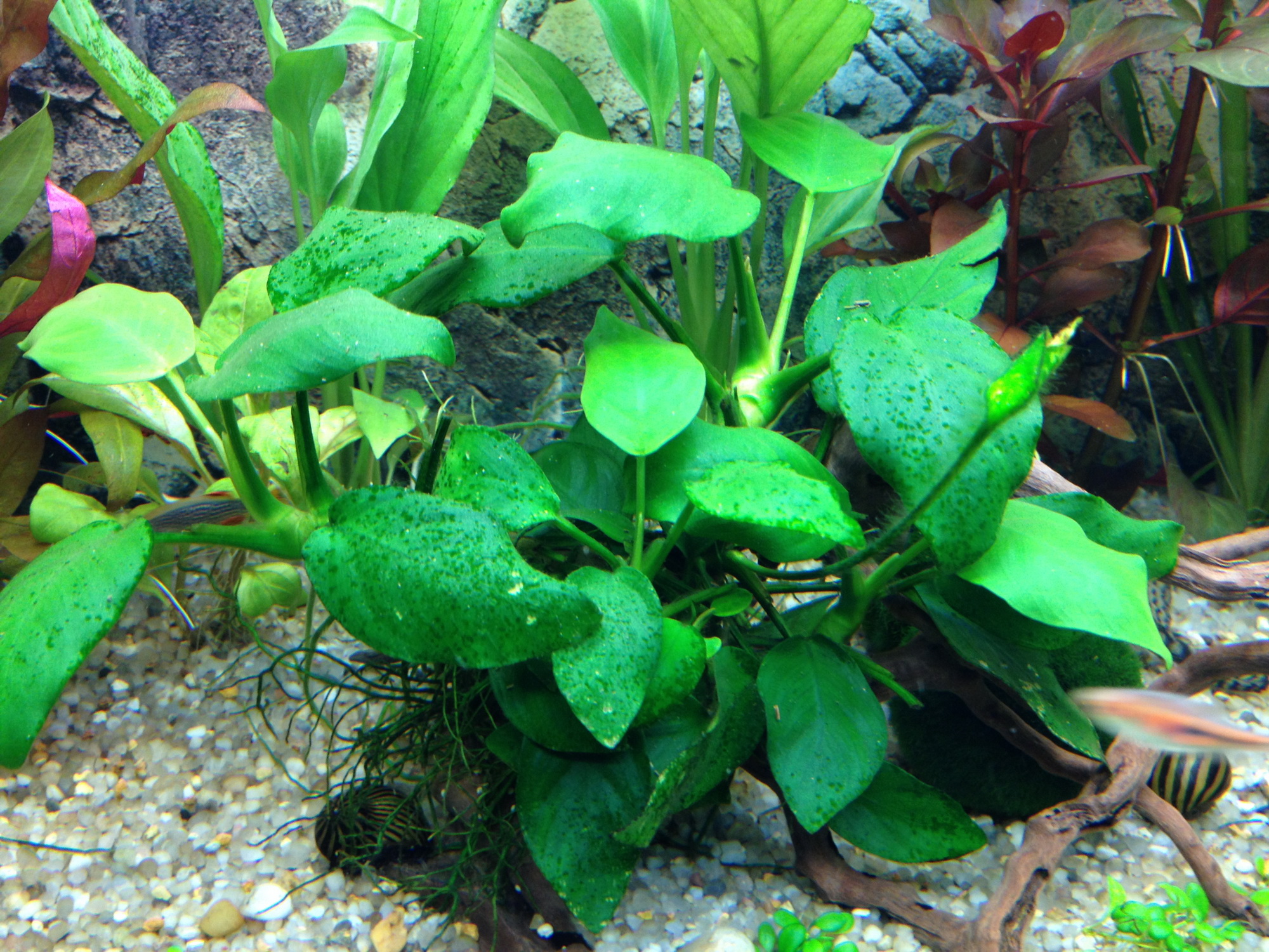 de ceva timp am vazut ca Anubiasul si inca o planta (cele din poze) au pe frunze pete verzi iar frunzele nu se dezvolta bine la Anubias petite nana,iar cealalta planta are frunzele cu gauri.