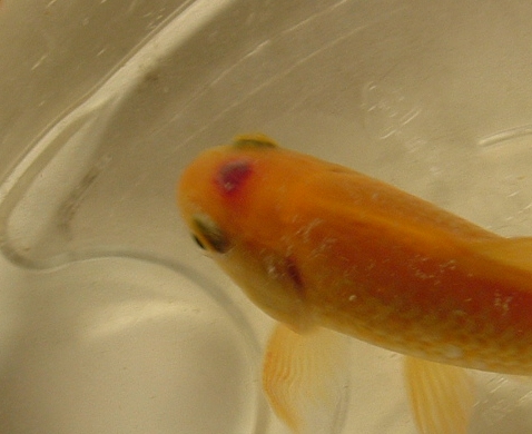 Am un caras auriu pe care il tin intr un bol. Am cumparat un acvariu de 100 de l dar nu am apucat sa il montez pentru ca nu am suport pentru el(masuta). Am fost plecata doua zile si l-am dus la prietena mea, cand m-am intors apa era f murdara si cand l-am luat in mana sa ii schimb apa am observat bubita aia cu un cheag de sange pe cap. Din ce am citit pe forumurile din afara am inteles ca ar fi vorba de o intoxicatie cu amoniu , lipsa de Oxigen si eventual o bacterie din cauza apei murdare. Va atasez o poza sa va faceti o idee. nu vreau sa il pierd, copilul meu e f atasat de el. Ce sa fac?Ce tratamente sa iau?Chiar tin mortis sa nu il pierd.Am gasit poza pe internet, cheagul lui e un pic mai mare pentru ca si caraselul meu e marisor, de asta am luat si acvariul mare.Acum nu prea mai mananca, alta data venea din prima la mancare. ii schimb apa dimineata si seara ....