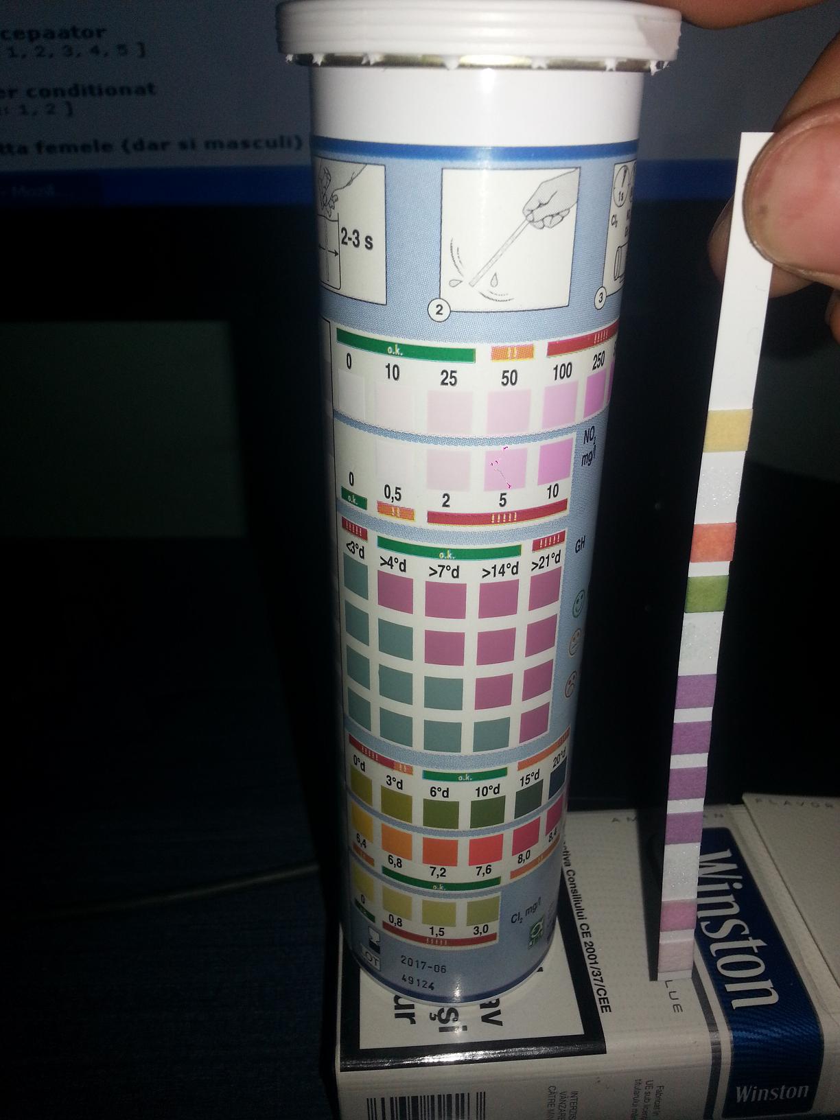 Testele stiu ca nu sunt cele mai ok dar aduceau de la Sera sau Tetra peste 15 zile si n-am vrut sa astept atat. In poza da il tin invers dar le-am citit bine. Ma poti ajuta cum sa ajung lalimita de ok cu cele care nu le am in regula ?