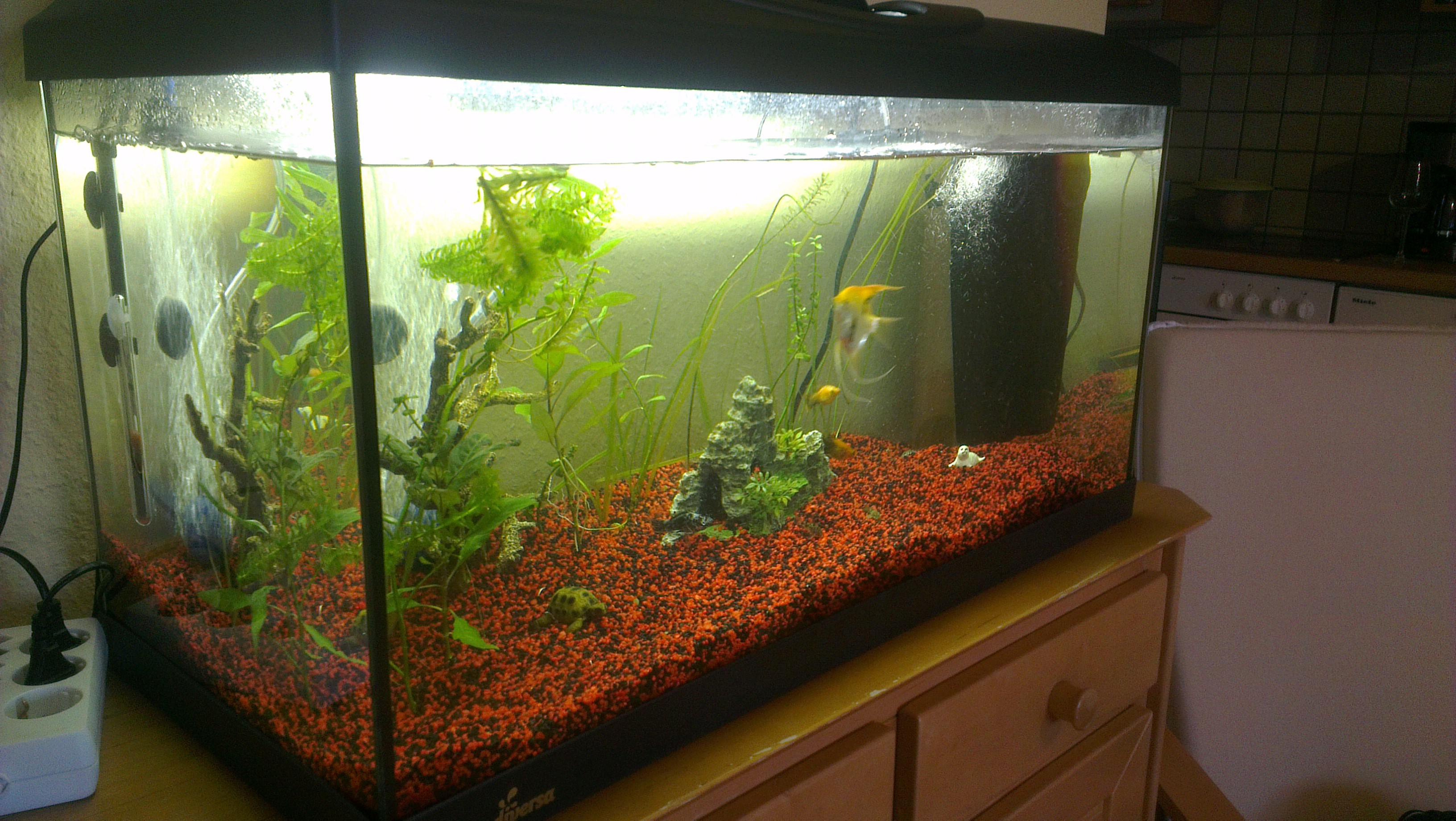 In preajma acvariului nu este, pe jos, prin decor, nimic nimic.