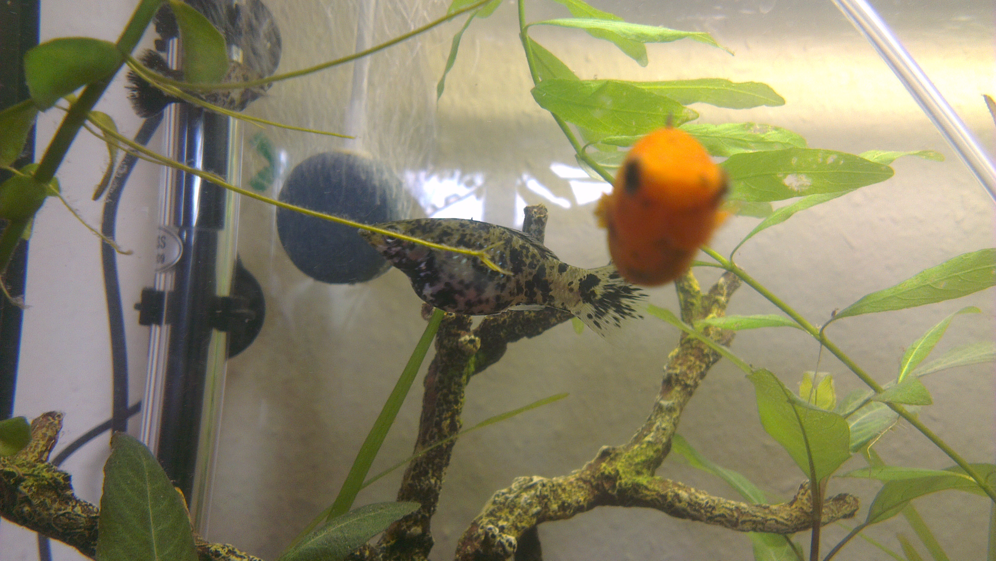 Molly avea circa 1 an iar Hoplosternum thoracatum cam 6 luni, deci sunt mai mici decat molly din acvariu.