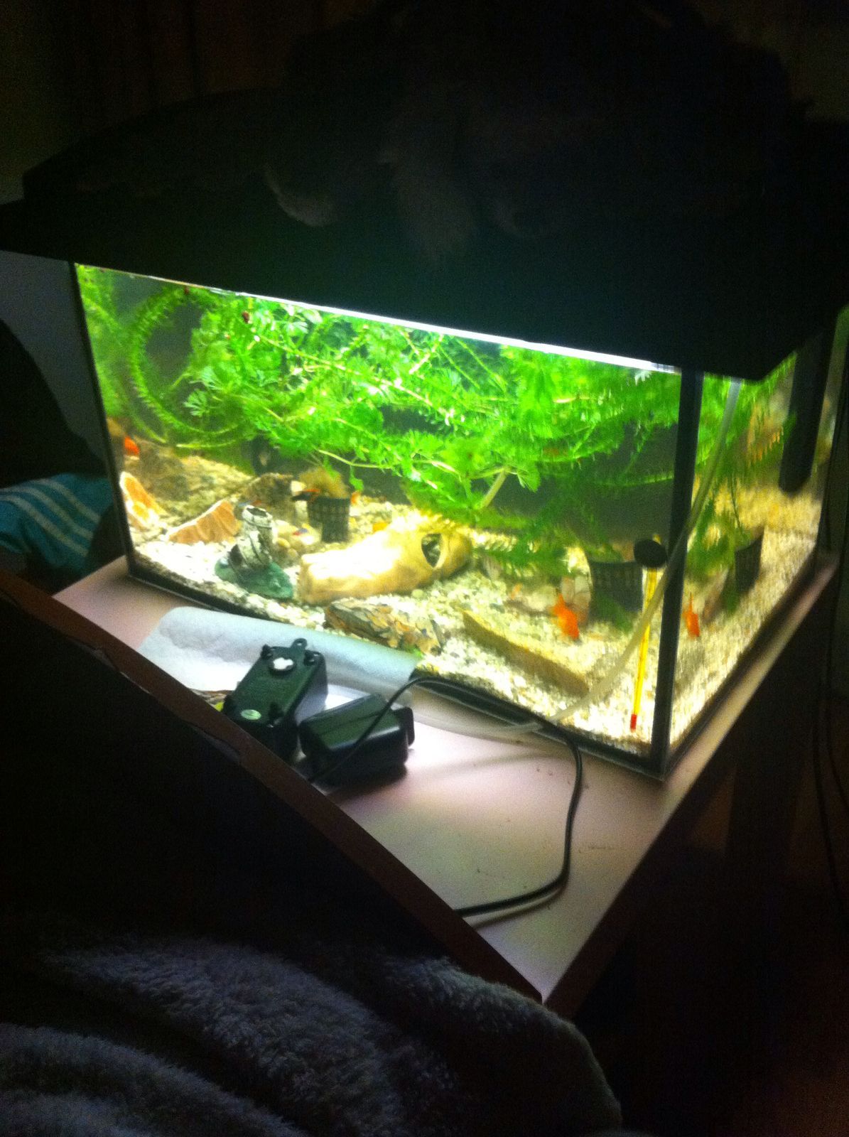 Asa cum s-a cerut am revenit cu poze , filtrare este am aparat special unul negru dar nu prea stiu detalii despre el , am si lumina dupa cum se vede , va rog spuneti-mi cu ce sa ii hranesc acum , sunt micuti si vreau sa stiu ce hrana le trebuie presupun ca cea normala pentru pestii adica cea ce ramane la suprafata nu o mananca , tocmai de asta va cer ajutorul sa manance ce anume sa le dau .
