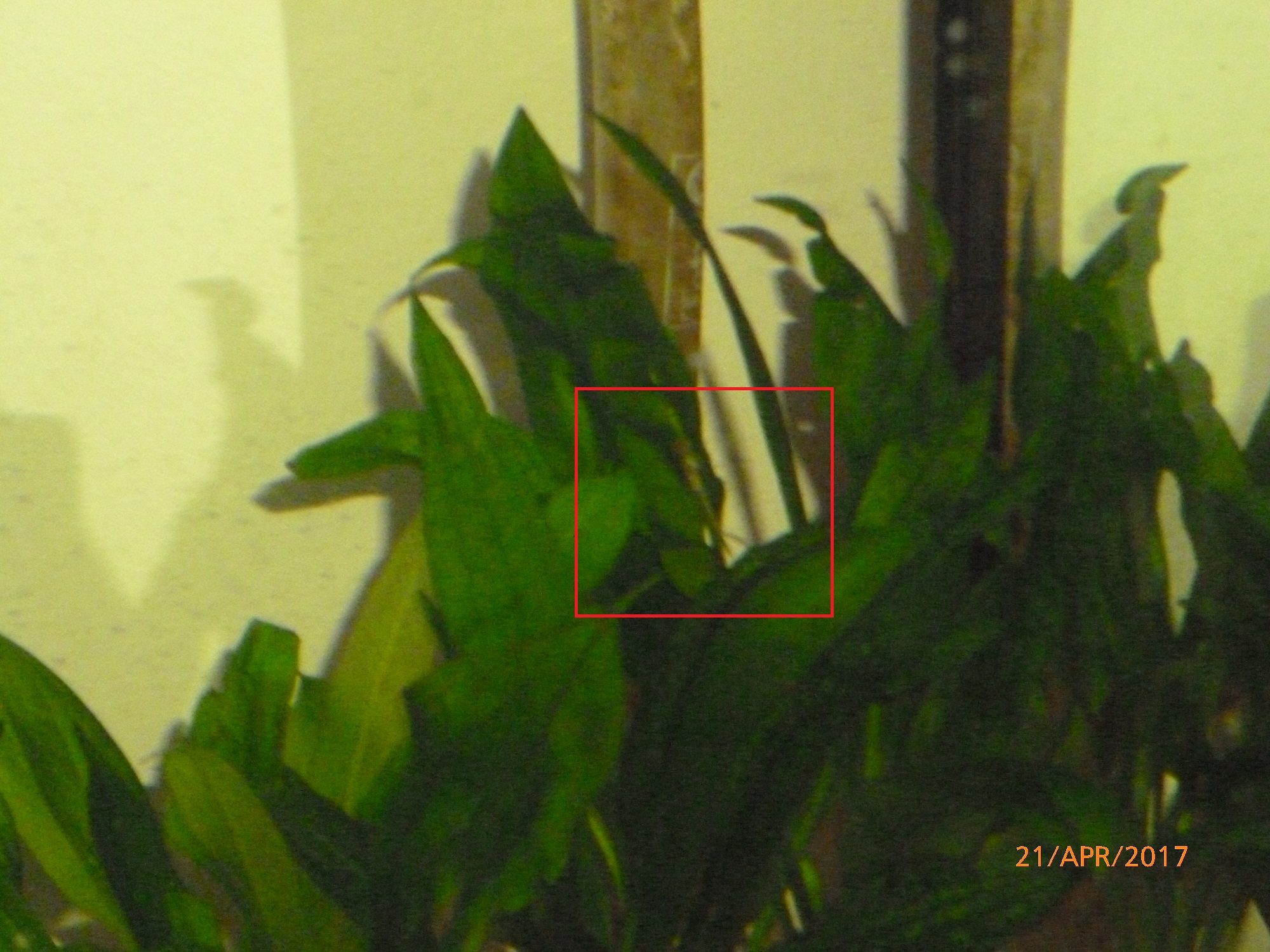 Sta cam in aceiasi zona, mai mult ascunsa intre frunze.