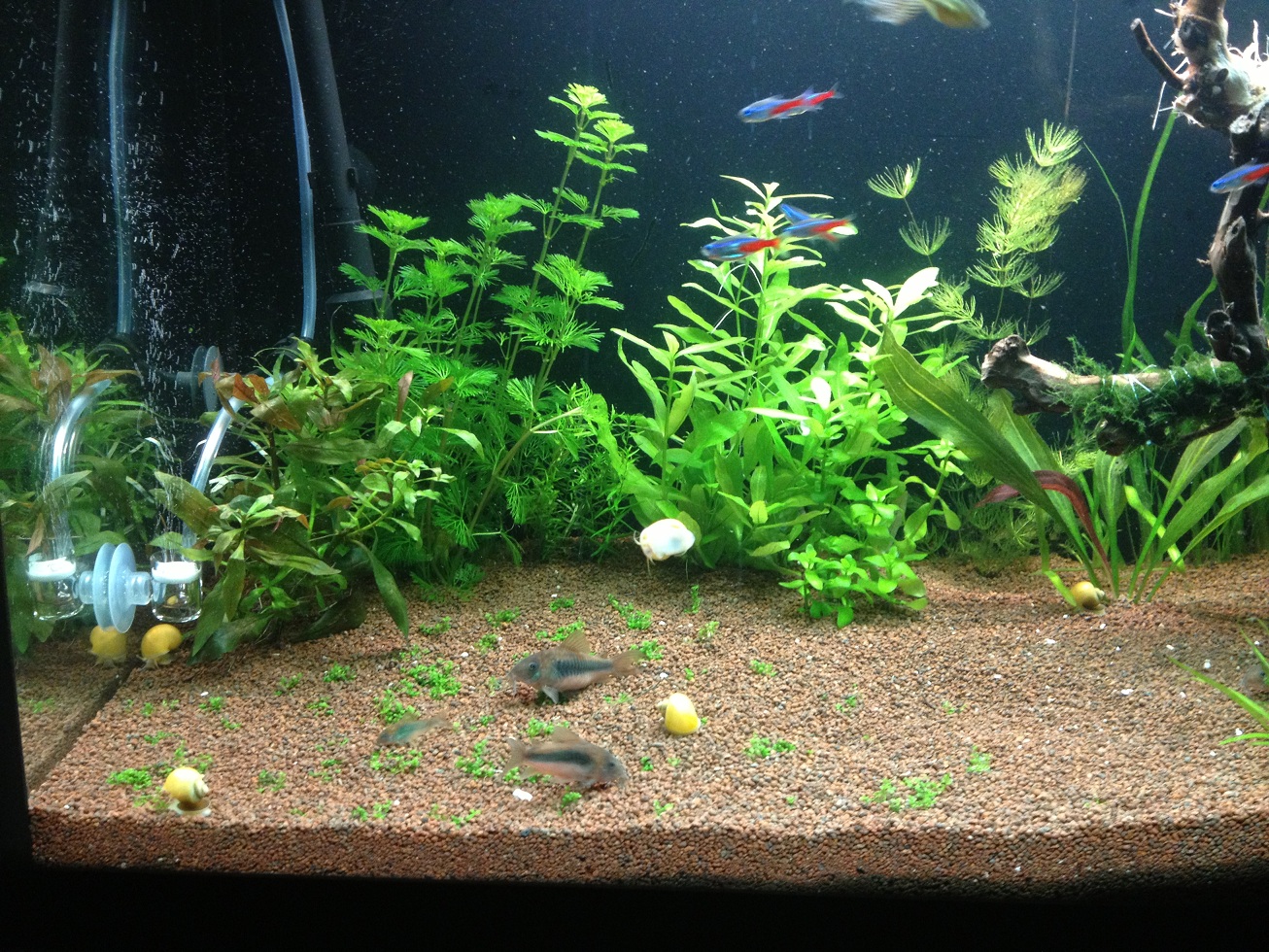 Fertilizanti si co2 nu am acum in acvariu odata cu neoanele o sa primesc si un robinet cu reglaj fin si o sa pornesc bomba cu o bula pe secunda