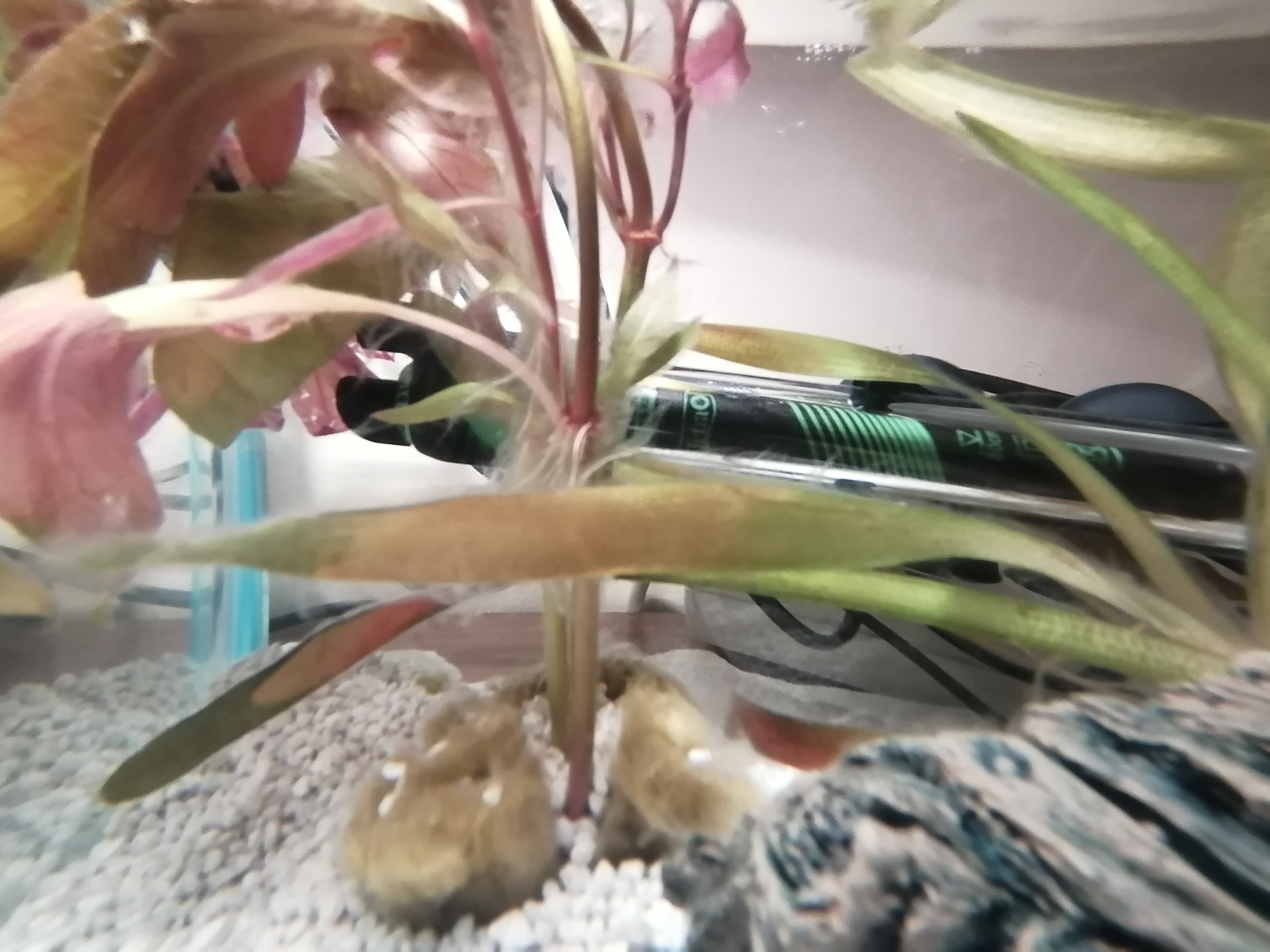 din proastele conditii ale celuilalt acvariu.......am bagat un singur guppy fericit......nu papa mucus....nu vreau sa iau melci