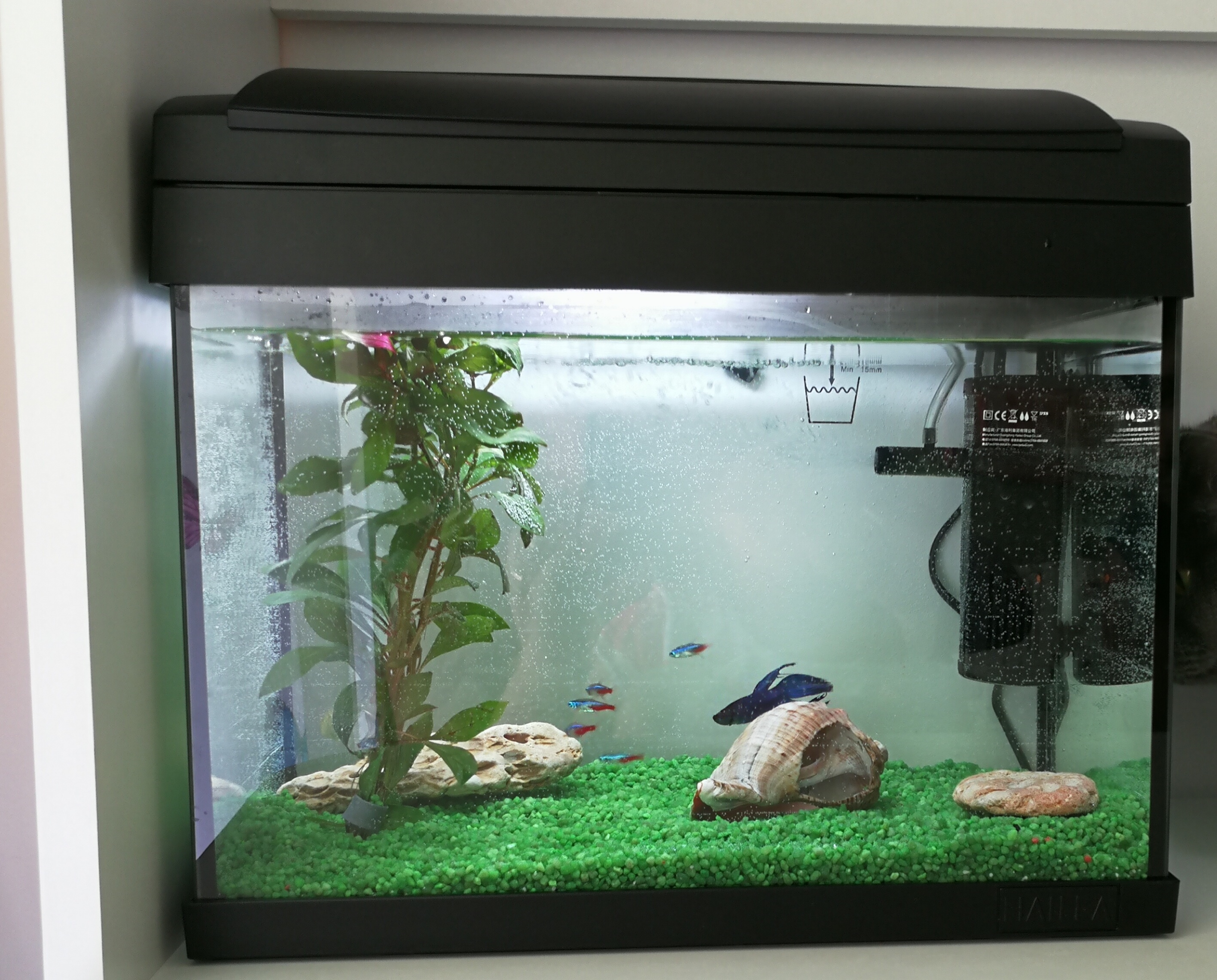 Am achizitionat ieri un acvariu pentru fiica mea, iar ca specii de pe?ti am un betta ?i 5 neon.