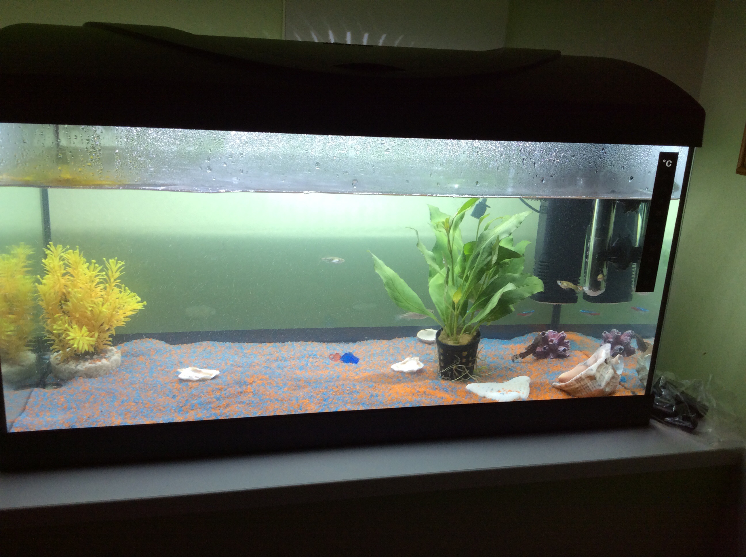 am 2 zebre 3 neoni 2 guppy si mai trebuie sa imi vina de pe nevertebrate 5 colisa si niste plante pentru suprafata si de asta spun ca nu prea am fonduri pentru substrat dar tu ce crezi ca e supra alimentat acvariul?