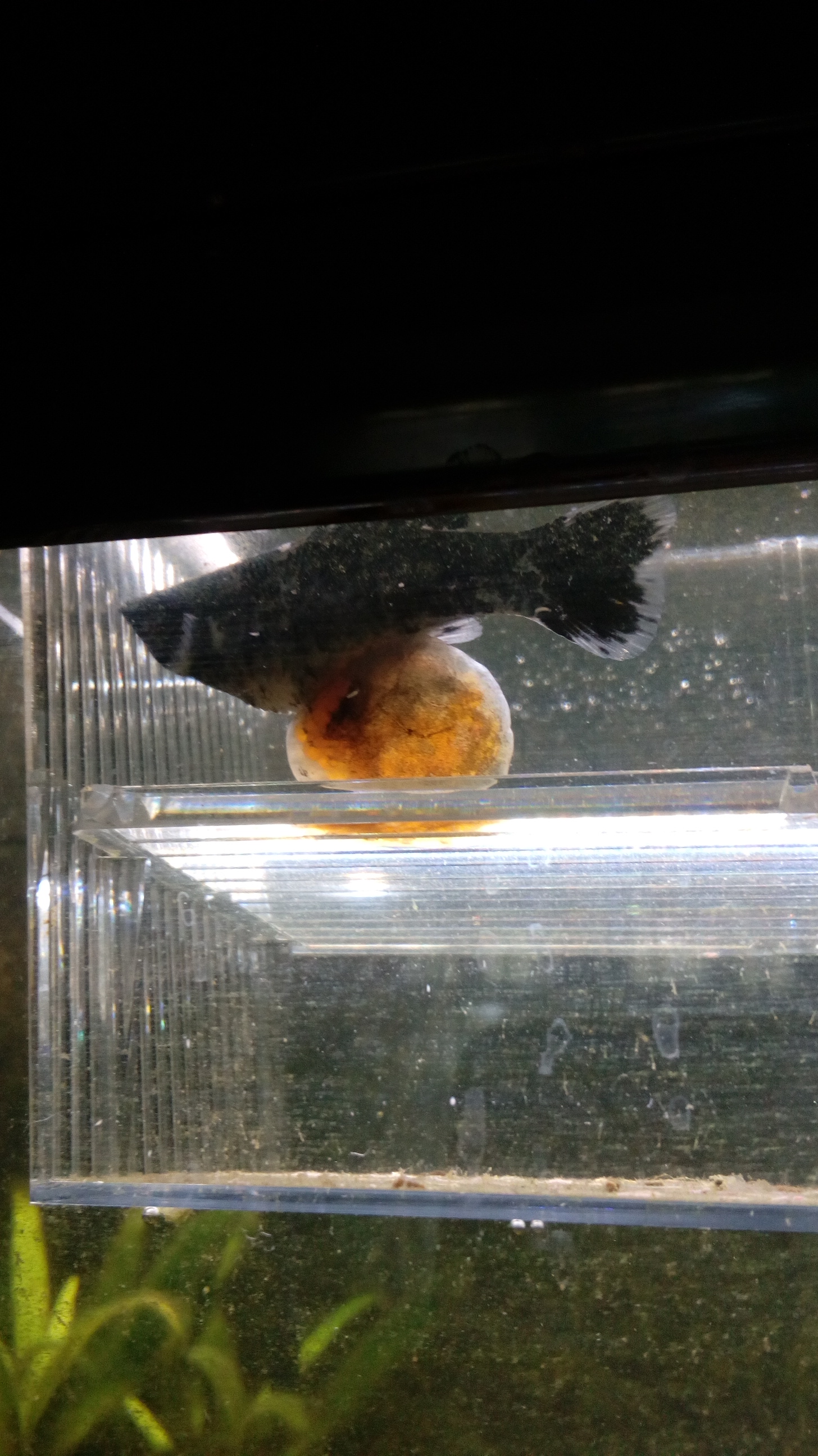 Salut.. Am o problema cu o femela.. am puso in maternitate si banuiesc ca ar trebui sa nasca pui vi dar in schimb are un balonas mare in care ar fi icre.. Doresc o parere..