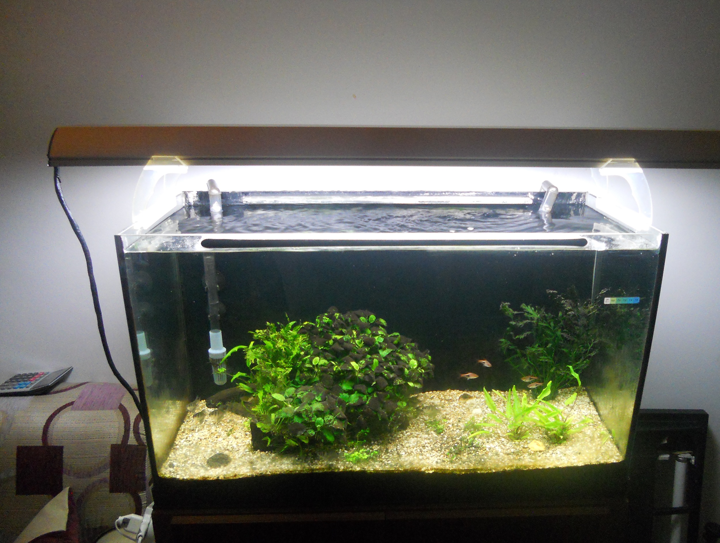 O poza cu lampa montata, deocamdata cu 2 neoane, pana se obisnuiesc pestii cu noua organizare. De luni trec in premiera la 90 de wati