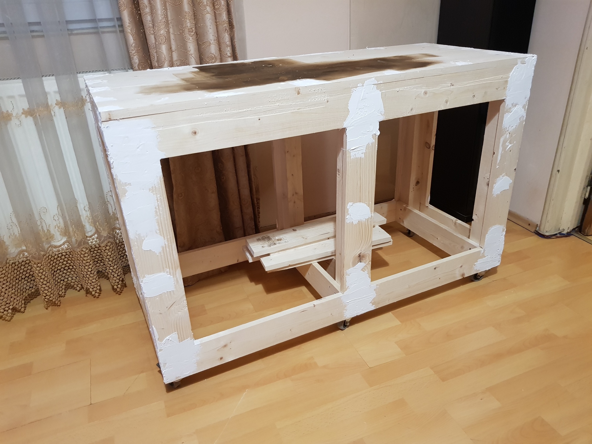 Astazi am ajuns sa montez tot corpul si l-am chituit. Acum astept sa se usuce chitul pentru a-l slefui si a ma apuca de vopsire. Ce parere aveti despre el, e ok sau mai bine mergeam pe un stand din rectangular ?
