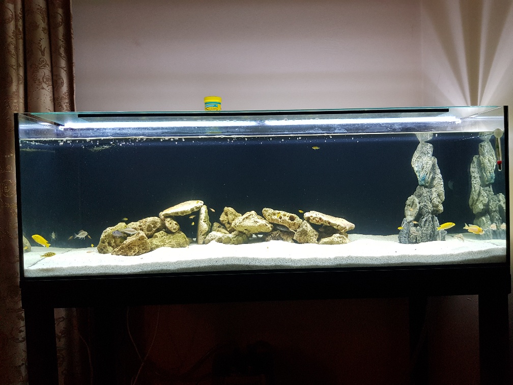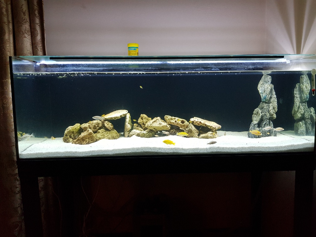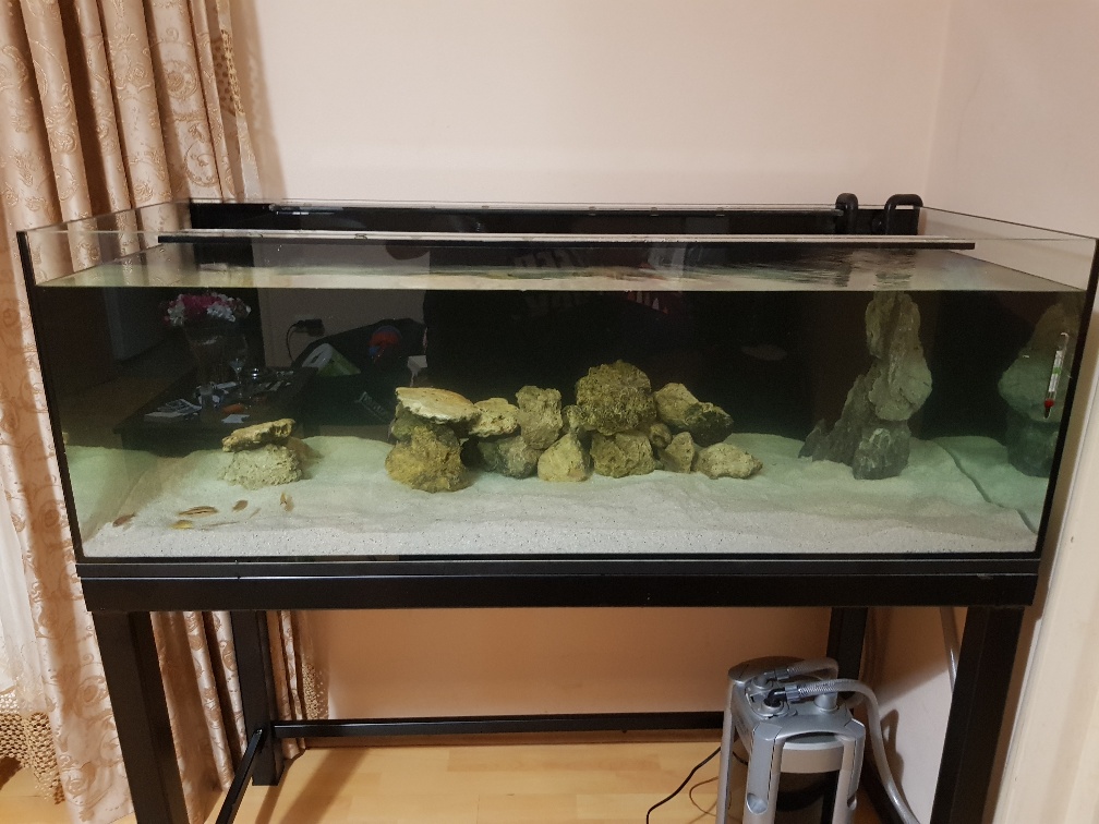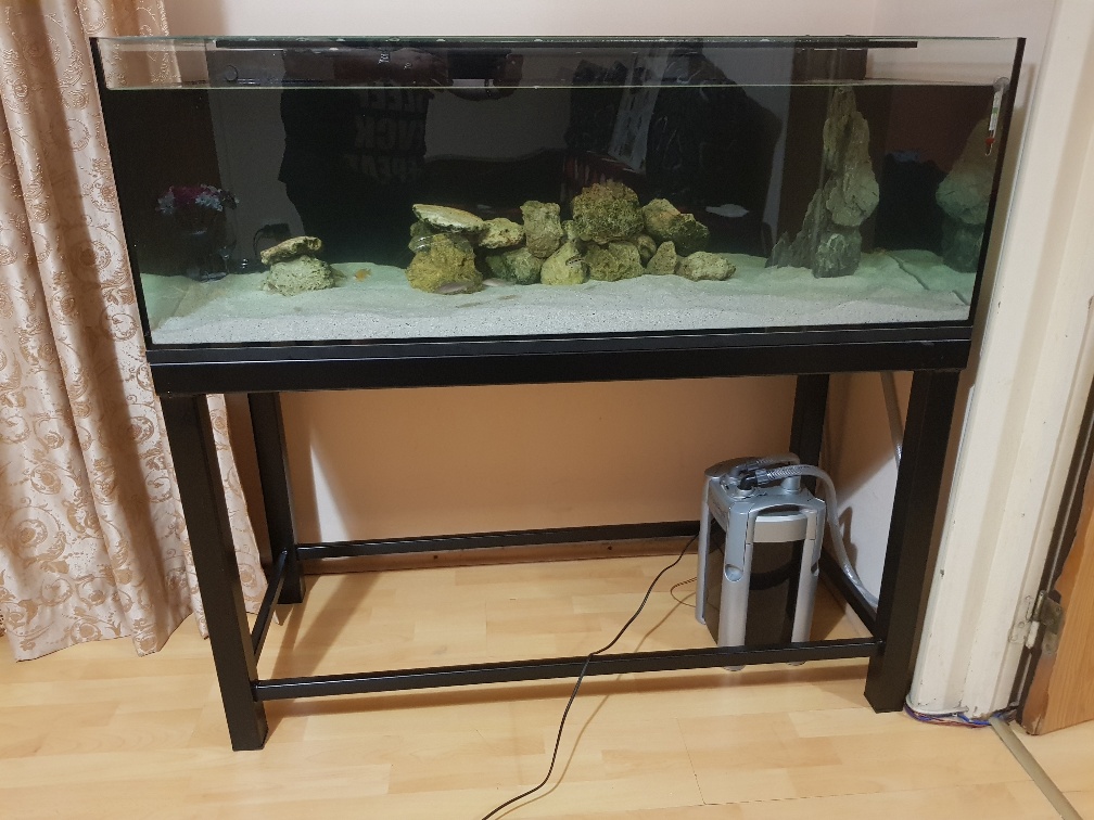 De ceva vreme detin un acvariu de 63L in care am cazat 10 ciclide, dar am ajuns in momentul in care vreau sa trec la ceva mai mare, in consecinta astazi am achizitionat un acvariu de 240L (120x50x40). Detin un filtru extern JBL E901 care va filtra apa din acvariu, iar tot de astazi m-am apucat de constructia unui stand din lemn pentru acest acvariu. Mai jos atasez cateva poze cu vechiul acvariul si cu noua achizitie.