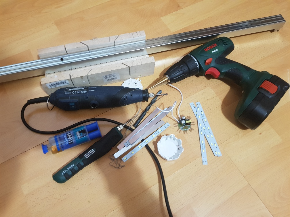 Dupa un weekend in care mi-am gasit putin timp sa mai bricolez cate ceva, a aparut si lampa care va lumina acvariu. In momentul de fata o folosesc asa, ramand doar sa o mai vopsesc neagra.