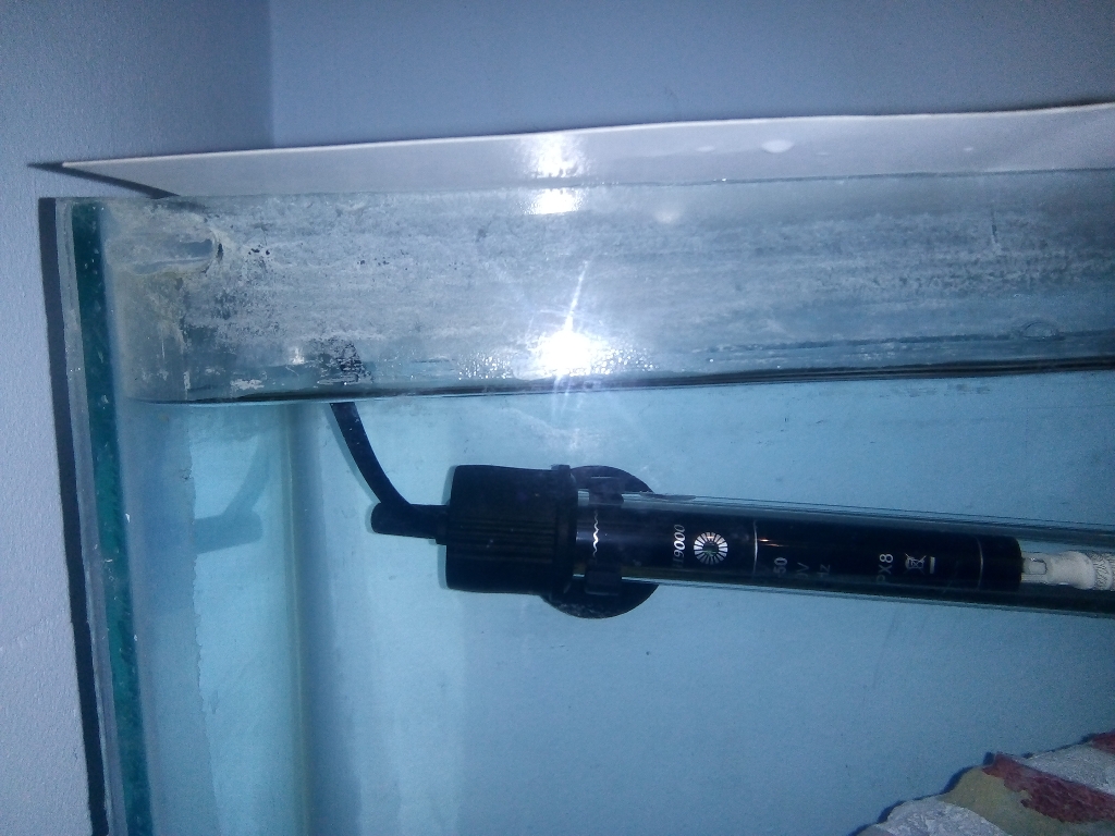 Salut .Astazi pe la ora 16 merg sa imi iau Bettanul .Eu mi-am luat acvariul de pe OLX ,era homemade ,de cand l-am cumparat pe partea de sus a sticlei era ceva asa alb (aveti o poza) si azi am zis sa o curat cu un burete (nou,spalat) dar acvariul avea apa in el ,am dat cu buretele si a cazut un praf in acvariu . Oare este toxic pentru Betta ?Chiar nu stiu , si daca e ,cu un schimb mare de apa rezolv?