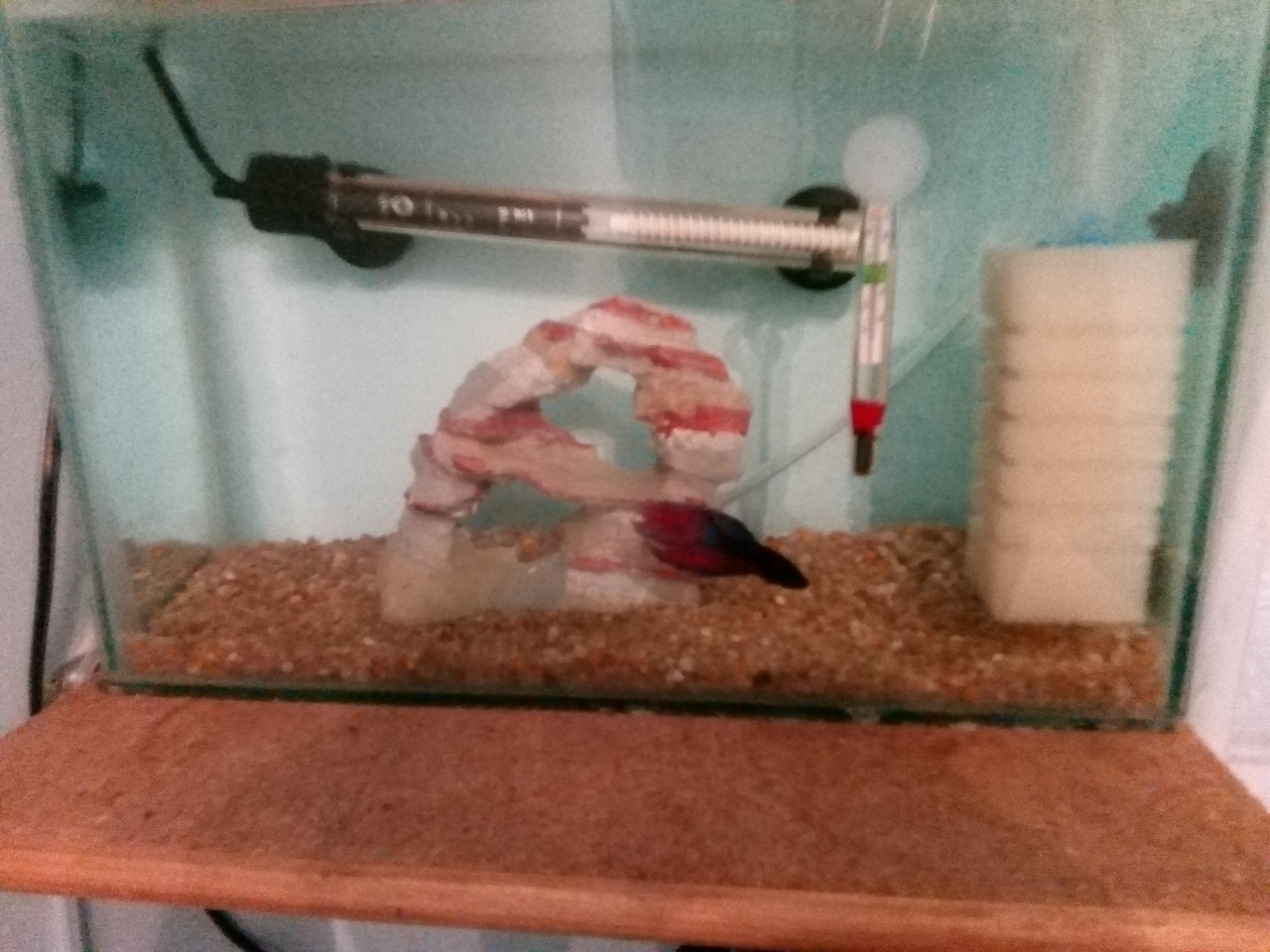Eu as fi folosit in loc de chestia aceia(shoada) o radacina de lemn, nisipul e iarasi nefiresc asa ruginiu/roscat si cu granulatie mare(nisip fin culoare gri), nu inteleg de ce nu va plac decorurile naturale mai apropiate de ceea ce are pestele in mediul de unde e original. Ca filtru iti recomand un filtru tip cascada nu ocupa deloc spatiu in interiorul acvariului(care e oricum mic, si buretele acela iti ia din loc)