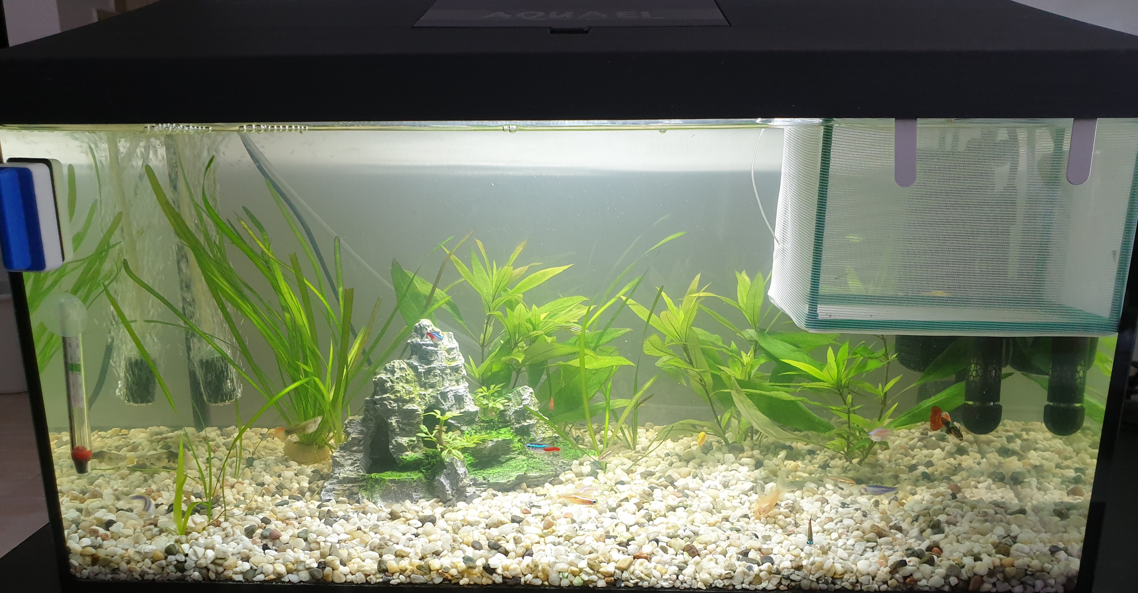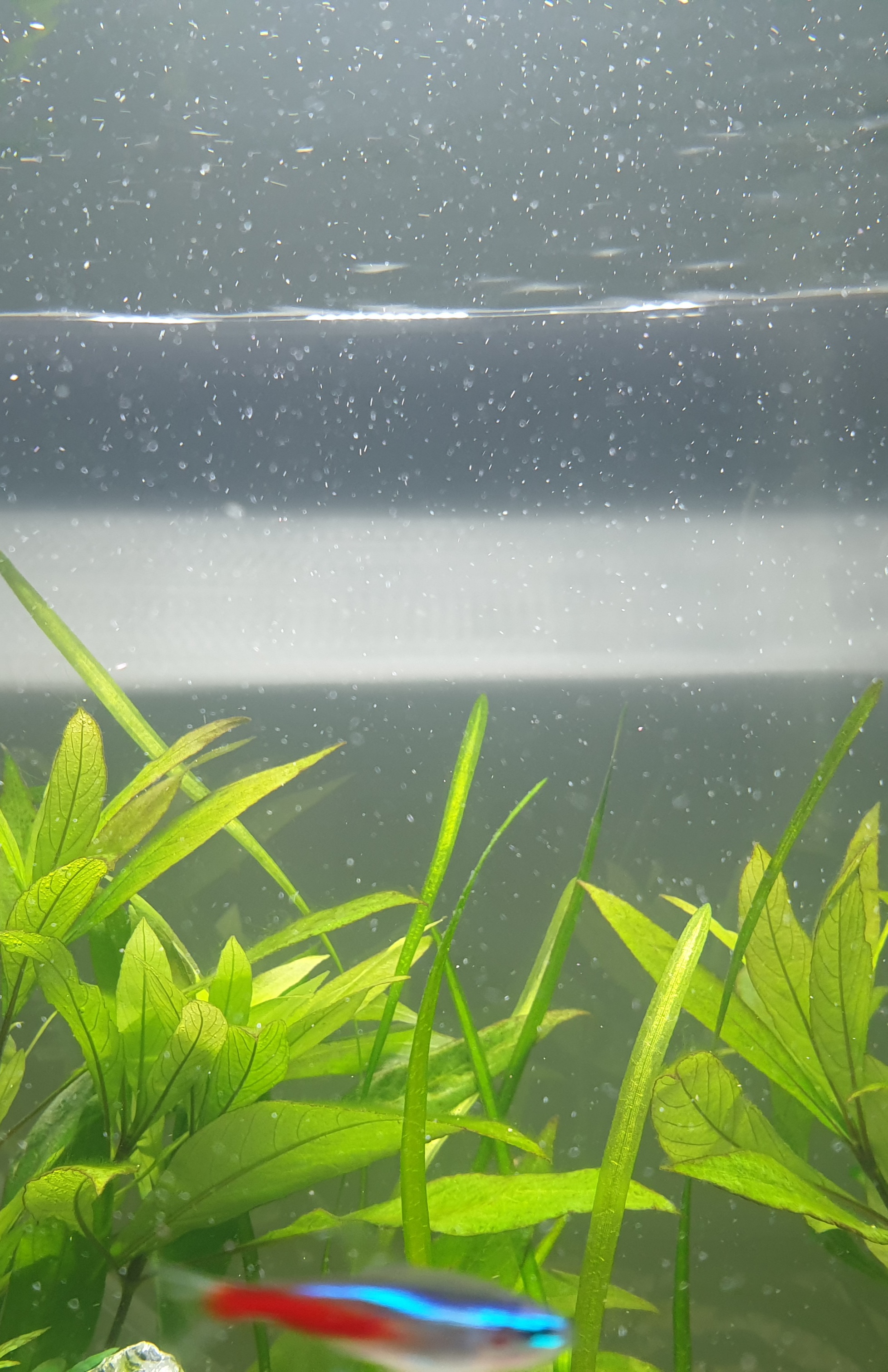 De la ce ar putea fi? Ce as putea face? Schimb apa prea rar? Plantelor le merge bine, nu s-au decolorat, ba chiar au o gramada de frunze noi, pestisorii la fel, arata foarte bine, înoata, se fugaresc.