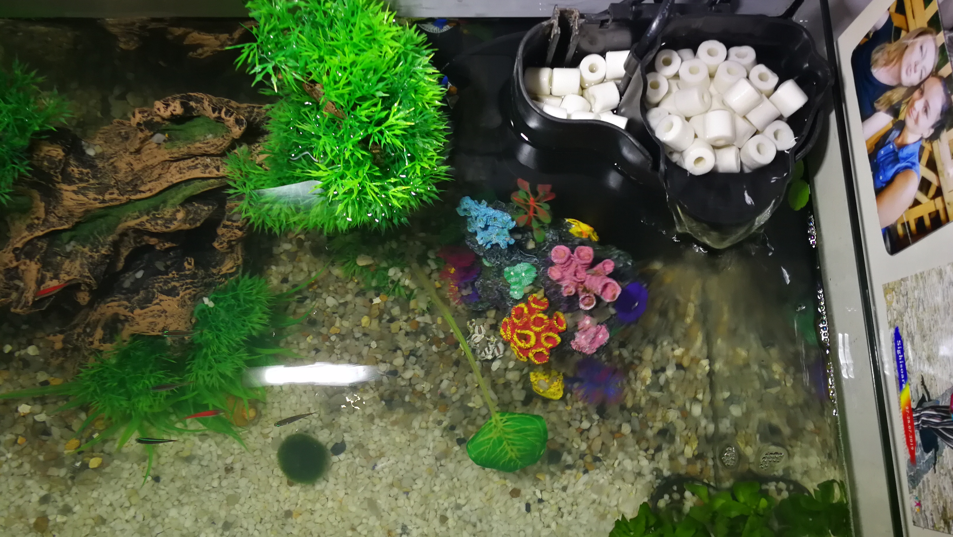 Ar fi mai ok daca ai scoate plasticele si inlocuieste-le cu pietre necalcaroase,lemne (mopani e ff frumos ) si plante.