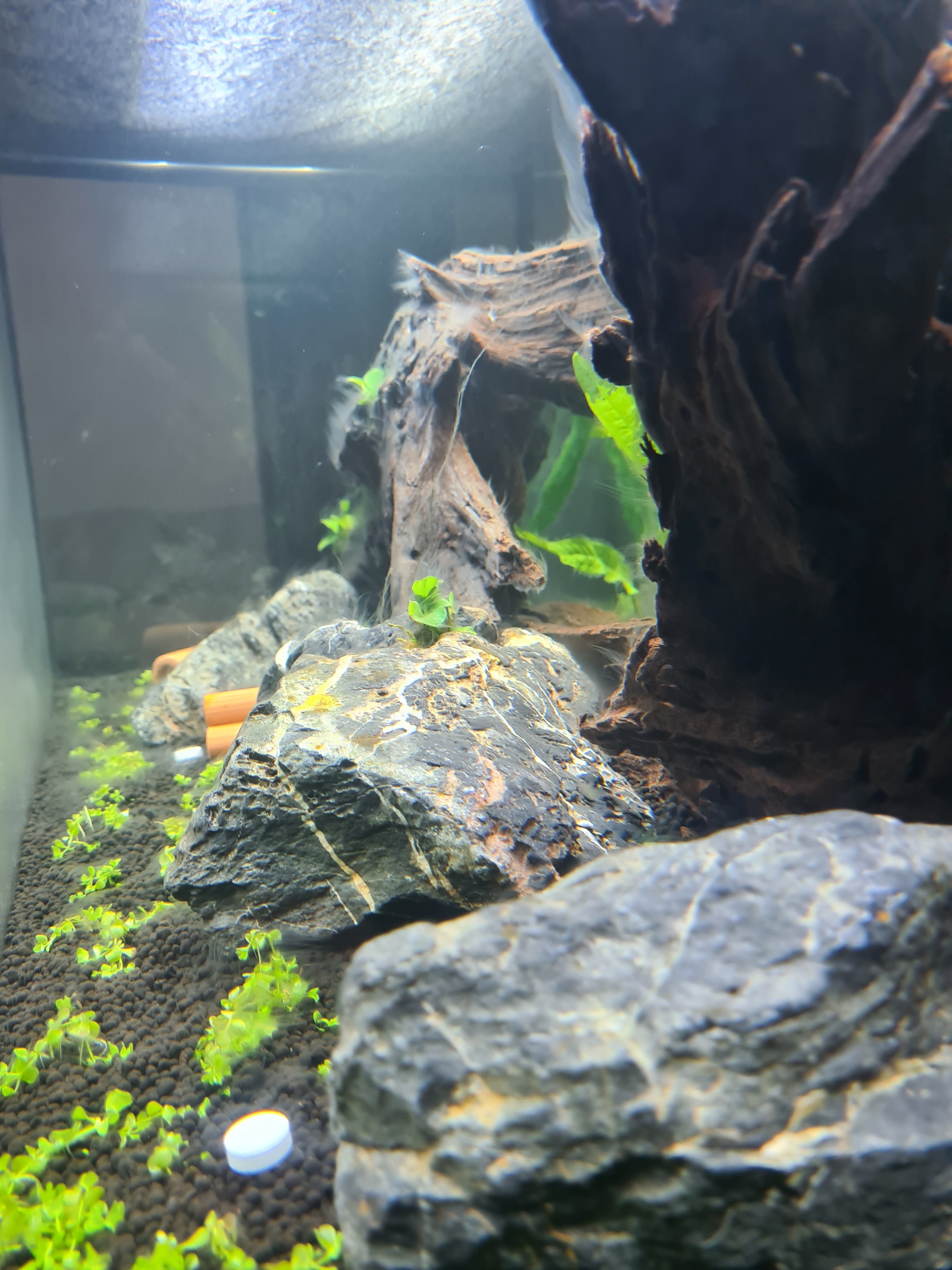 Nu te stresa si mai mult NU baga inca apa oxigenata. Acvariul tau este tanar, da-i timp.