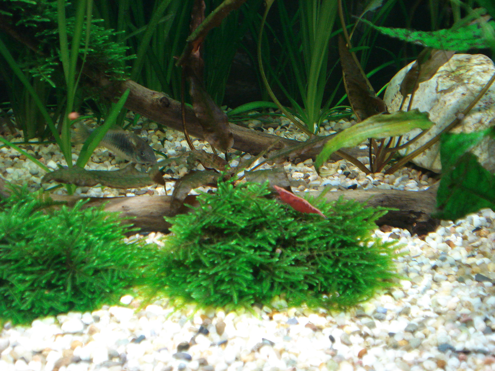 Am schimbat substratul cu unu mai "natural", mi-am bagat un pic si degetelele si pe la lumina, am pus alte crengi.......si cam atat. Pestii sunt tot aia (3 Gurami, 6 Golden Barb, 1 SAE, 1 Oto si 3 Cory) Mai exista si vreo 5 RCS care rezista, rezista la toate "tratamentele" si schimbarile astea. Cand am pus substratul asta nou, am replantat toate plantele imediat. Nu vreti sa va imaginati cum era apa. Pe plante s-a asezat un "praf" ca la fabrica de ciment. Atunci am crezut ca arunc acvariul pe geam de nervi.